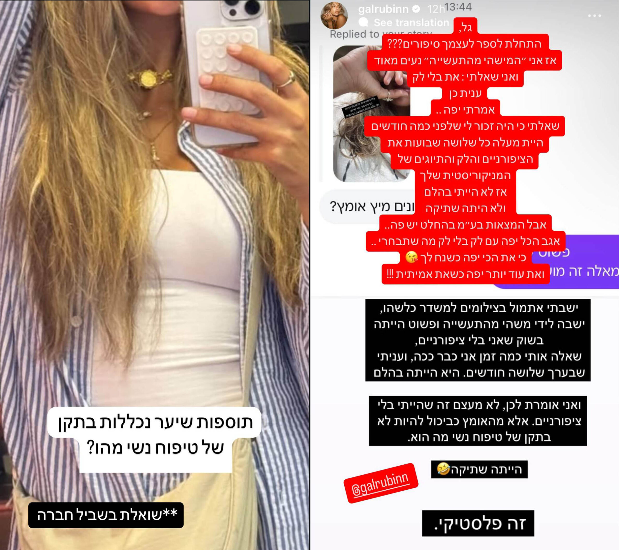 העימות המשיך להתגלגל כאשר ג'קי העלתה תמונה של גל רובין ותוספות השיער שלה ושאלה בעוקצנות: "תוספות שיער נכללות בתקן של טיפוח נשי מהו? שואלת בשביל חברה".