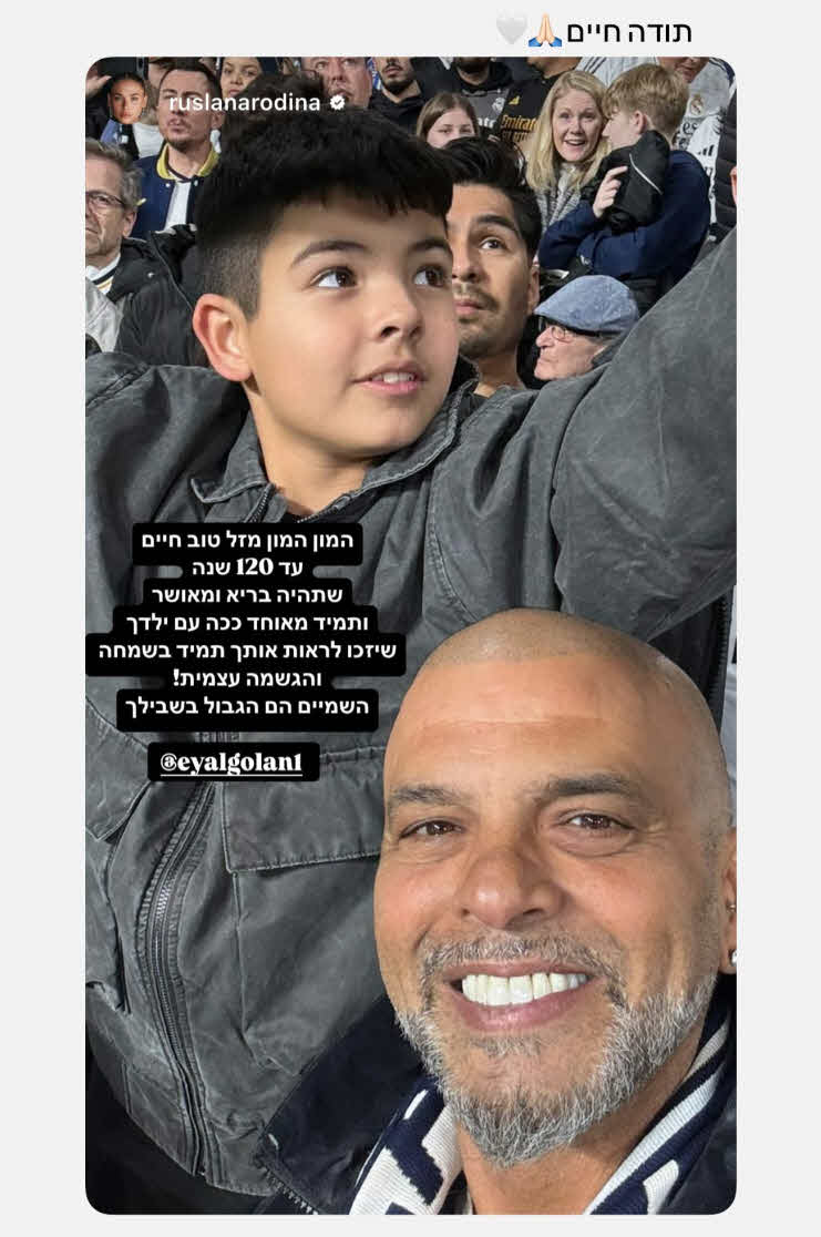 רודינה, שכזכור מתמודדת בימים אלה עם הליך גירושין מבעלה איתי פז, לא נתנה למצב הרגשי שלה לעצור אותה מלפרגן לבן זוגה לשעבר, ואבי בנה יאן – הלא הוא אייל גולן. בסטורי שפרסמה, העלתה רוסלנה תמונה של יאן ואייל יחד, לצד ברכה לבבית ומדויקת: