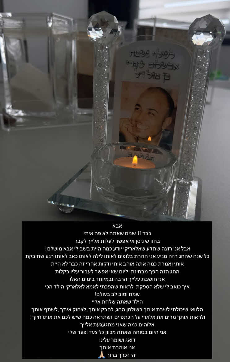 לצד תמונה של אביה ונר נשמה שהודלק לזכרו, כתבה עופרי: "אבא, כבר 11 שנים שאתה לא פה איתי… כל שנה שהחג הזה מגיע ואני חוזרת בלופים לאותו לילה, לאותו כאב, לאותו רגע שחיבקת אותי ואמרת לי כמה אתה אוהב אותי ודקות אחרי זה כבר לא היית."