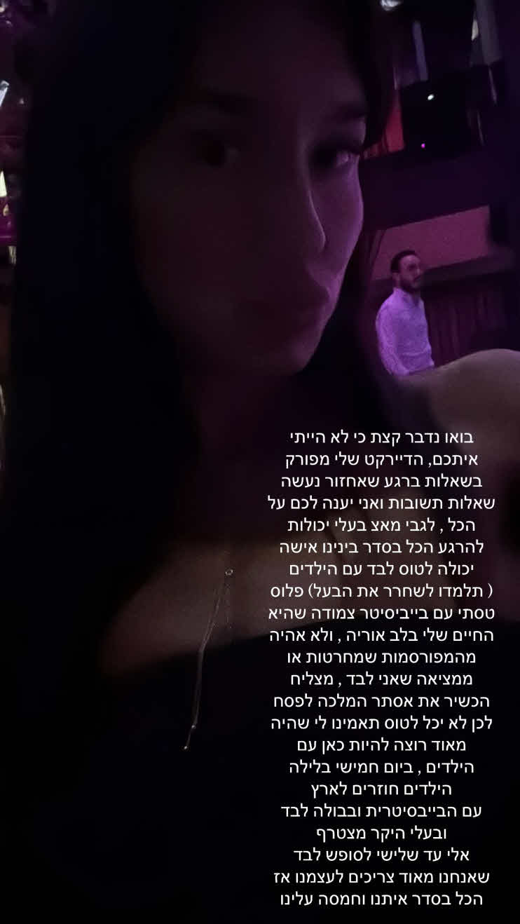 בספלוב, מצדה, לא נשארה שקטה. היא בחרה להשיב למבקרים ישירות בסטורי: "די עם התגובות על הרזון. אני הכי פצצה בארץ, תניחו לי, חג שמח מתוקות".