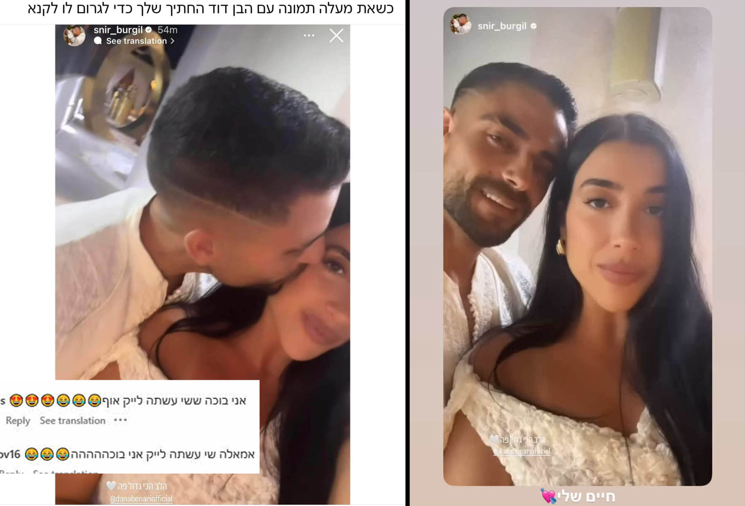 מי שהגיעה לחגיגה הייתה דנה בן ארי, כוכבת "אהבה חדשה", ושם – בין מופלטה אחת לשנייה – היא ושניר תועדו כשהם צמודים במיוחד, כולל נשיקה עסיסית שתועדה בסטורי. שניר העלה את הרגע עם הכיתוב "הלב הכי גדול פה", בעוד דנה שיתפה אותו מחדש וכתבה: "חיים שלי" בצירוף לב.