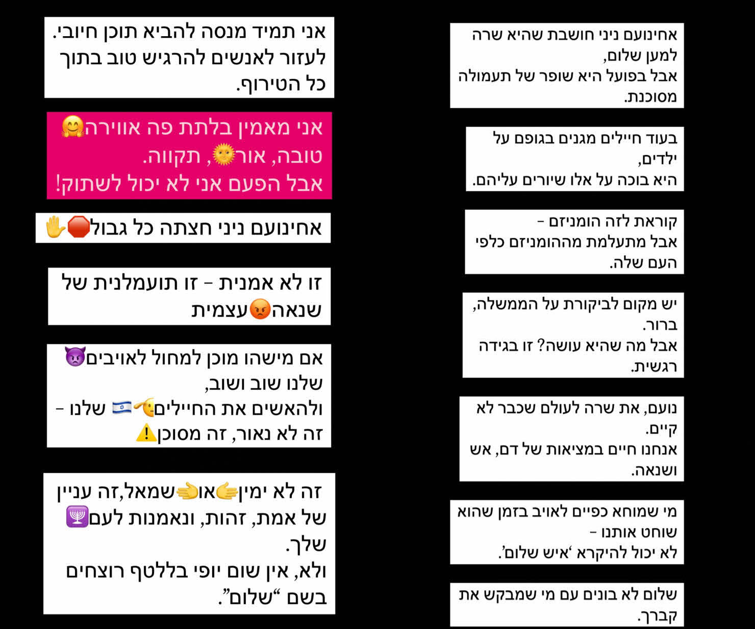 אז אני אגיד לך בוגדת קטנה וחצופה , אין סיוע הומניטרי לעזה ולא יהיה עד שיחזור החטוף האחרון , קשה לך עם זה , מוזמנת לעבור לחיות עם החברים שלך , אולי שם תצליחי להופיע כי בישראל אין לך מקום