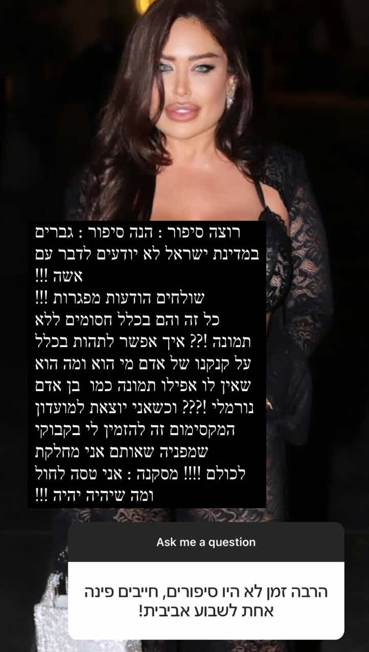 "גברים בישראל לא יודעים לדבר עם אשה! שולחים הודעות מפגרות! כל זה והם בכלל חסומים ללא תמונה!? איך אפשר לתהות בכלל על קנקנו של אדם? מי הוא ומה הוא כשאין לו אפילו תמונה כמו בן אדם נורמלי!?".