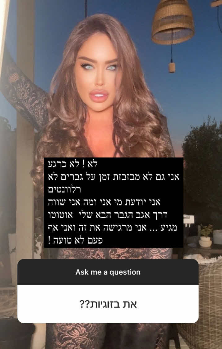 והוסיפה: "אני יודעת מי אני ומה אני שווה. דרך אגב, הגבר הבא שלי אוטוטו מגיע. אני מרגישה את זה ואני אף פעם לא טועה!". בר זוהר החליטה להרחיב בנושא ושיתפה סיפור אודות המחזרים הישראלים הלא מוצלחים שלה:
