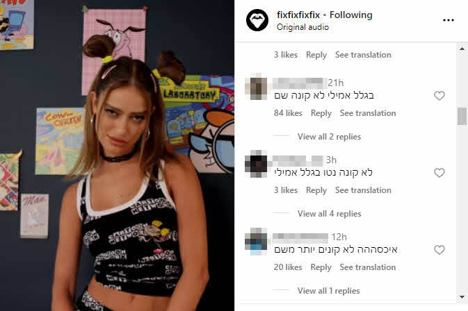 אחת הגולשות כתבה בתגובה המובילה ברילס: "פרנציפ לא קונה בפיקס, עכשיו כשראיתי את אמילי הפרינססה קופר בפרסומת הזאת". גולשת אחרת הוסיפה: "עם החיה בסרט? מה קרה נגמרו הטיקטוקריות?".