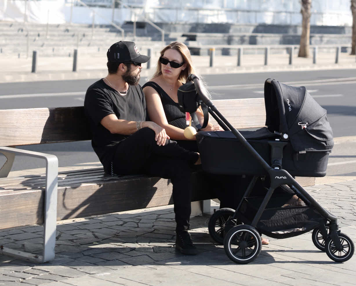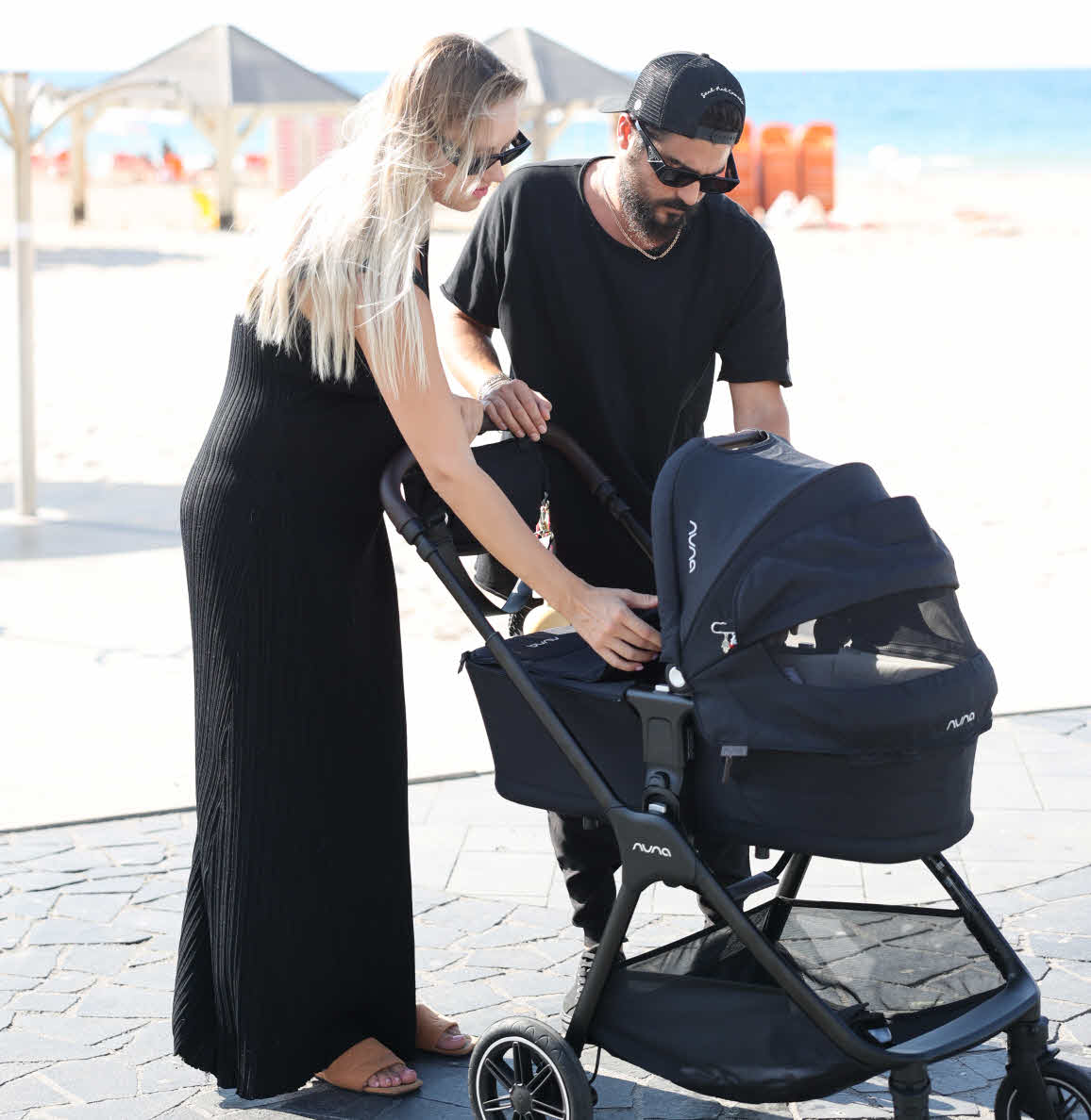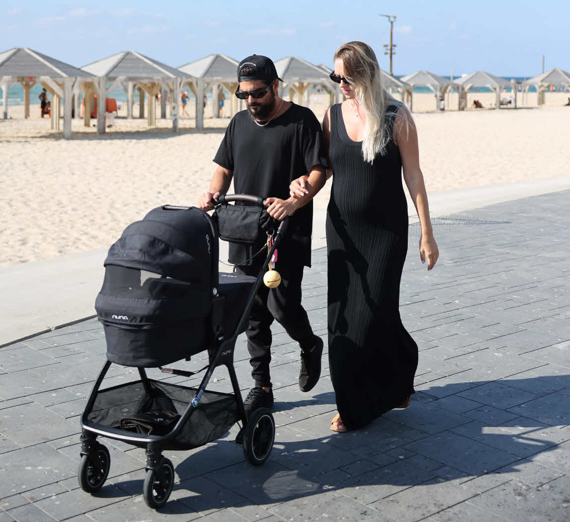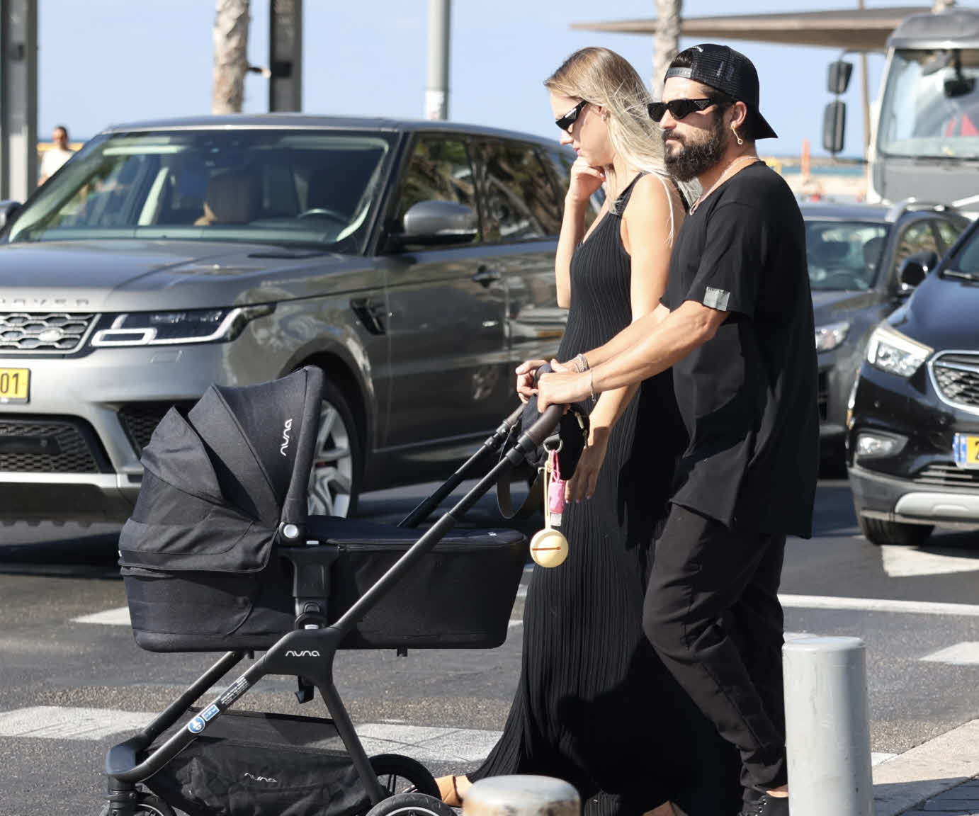 שלומי ואלכס השתחררו היום מבית החולים שיבא תל השומר שברמת גן והחליטו לצאת למסע ראשון עם בתם ברחובות תל אביב, ואיזה לוקיישן טוב יותר מאשר בשמש הנעימה לצד הטיילת בחוף הים?