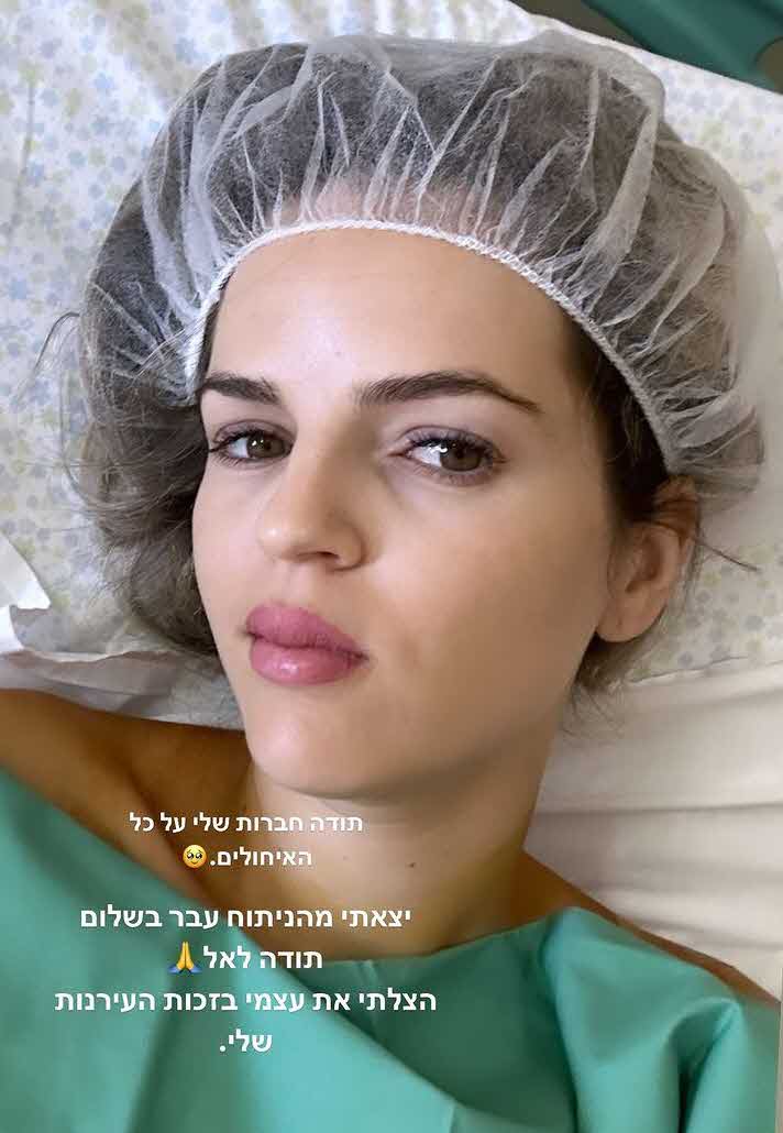 לאחר מכן הוסיפה בדמעות:"למזלי גילינו את הדימום הזה רק בניתוח שזו הסיבה לכל מה שעברתי, כרגע אני עם צינוריות שמחוברות לחזה שמנקזות לי את הדם. לא המראה הכי נעים שיש, אבל הבריאות היא מעל הכל".