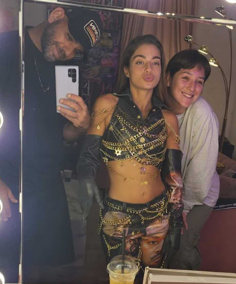 "נועה רצתה בגד מפוצץ לשטיח האדום של אם טי וי, אני אחרי כמה שניות שלחתי לה מלא מלא רפרנסים של בגדים יפים מגניבים משוגעים כמו שאנחנו יודעים לעשות. נועה מיד ענתה לי 'לא……' אני רוצה בגד עם אמירה עם משמעות, אני רוצה את הוודג׳ של קנייה וסט על הבגד ( אישה משוגעת )אוקיי אמרתי לה אם כך תני לי כמה שעות ואני חוזר אליך"