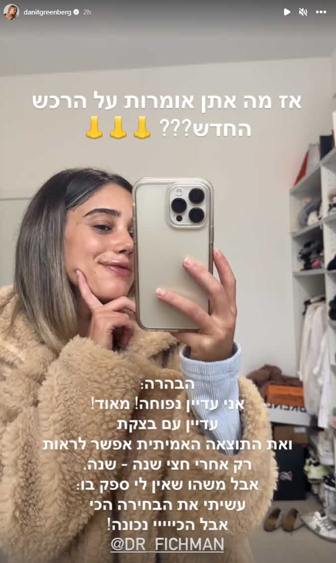 לעומת זאת דנית זכתה ללא מעט פרגונים, אחת המגיבות יצאה לזכותה:"האף שלה מושלם וזו תוצאה מדהימה לניתוח אף שני לעצם שבורה". כותבת נוספת חיזקה:"בפעם המליון היא לא רצתה לעבור אותו, היא הייתה חייבת, להזכירכם היא עברה תאונת דרכים וכל האף שלה התרסק מבפנים ועכשיו היא טיפלה בזה".