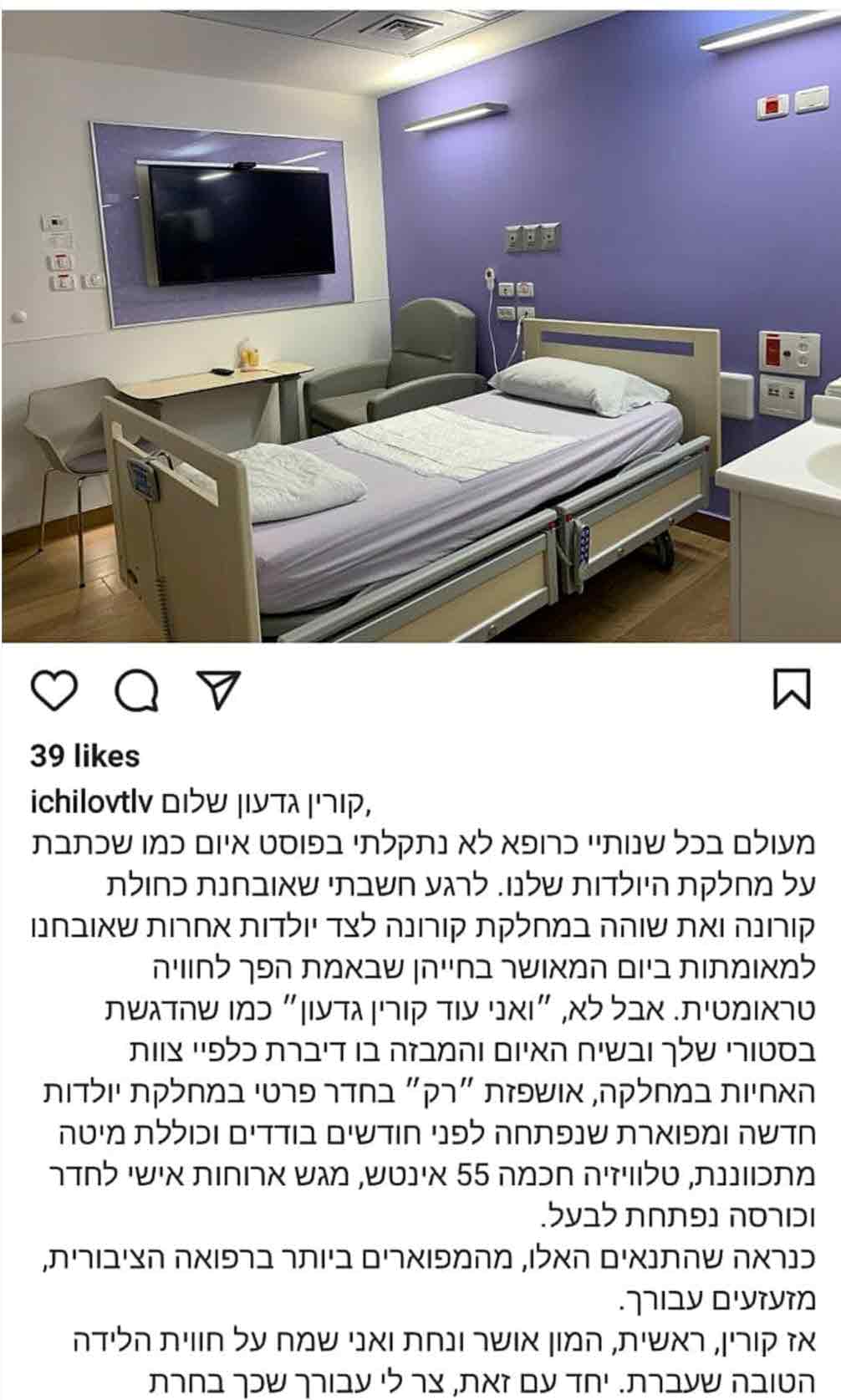 הדברים שכתב פרופסור יריב יוגב בעמוד הרשמי של איכילוב באינסטגרם לאחר הביקורת של גדעון: