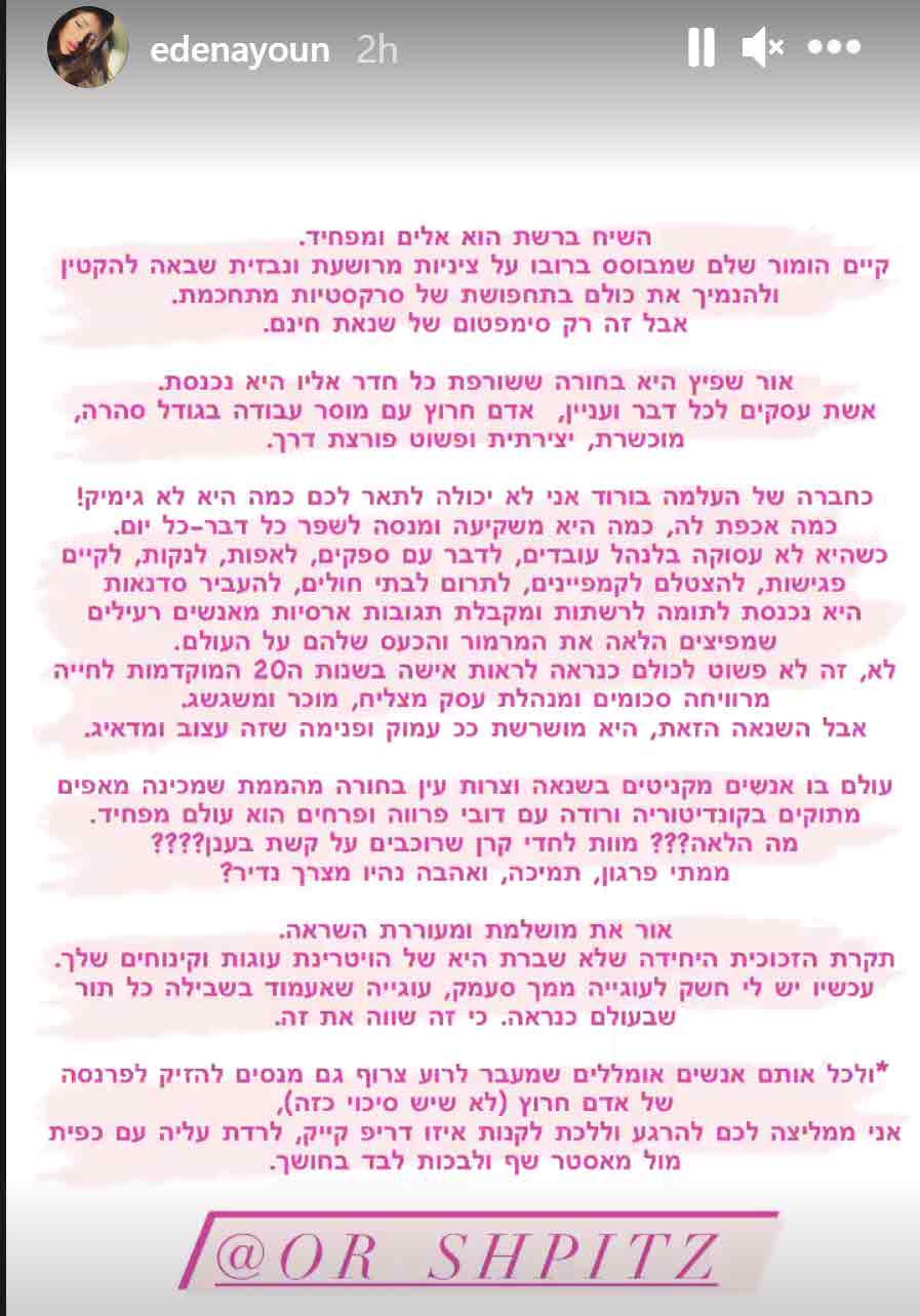 כוכבת "בייקוף ישראל" שכבר עשתה קריירה מאוד צבעונית מאז יצאה מריאלטי האפייה, אור שפיץ ספגה ביקורות קשות מאוד ברשת שהביאו אותה עד לדמעות בסטורי מול עוקביה וזאת הסיבה.