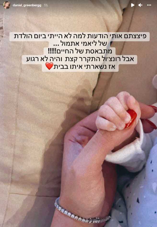 השאלות בדבר חסרונה של גרינברג ביום הולדתו של בנו הבכור של גולן התחילו לצוף ברשת ואיתה גם הסקרנות סביב סיבת ההברזה. ולא אין קשר לחיבור המחודש עם אילנית לוי חלילה. דניאל הגיבה:"פיצצתם אותי הודעות למה לא הייתי ביום הולדת של ליאמי אתמול… מתבאסת של החיים!!! אבל רונצ'ול התקרר קצת והיה לא רגוע אז נשארתי איתו בבית."