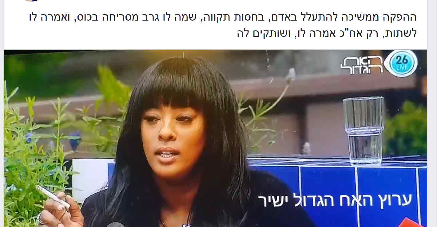 הרבה מאוד גולשים וצופי "האח הגדול" מציפים את הפורומים וקבוצות הפייסבוק בשעות האחרונות בעקבות הקטע הבא שתראו כאן בהמשך בו תקוה גורמת לאדם לשתות מהכוס שלו ומספרת לו שהכניסה לתוכה גרב מזיעה ומסריחה ללא ידיעתו לפני ששתה ממנה!