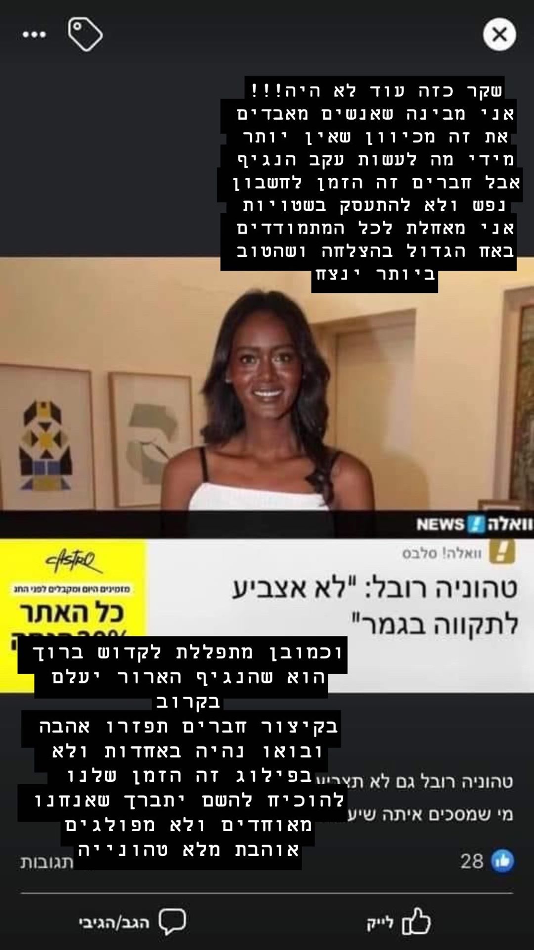 כאשר צילום המסך הזה הגיע לזוכת העונה ה-5 והנשואה הטרייה, טהוניה רובל, היא העלתה סטורי שמסביר באופן חד משמעי שמדובר בזיוף מרושע: