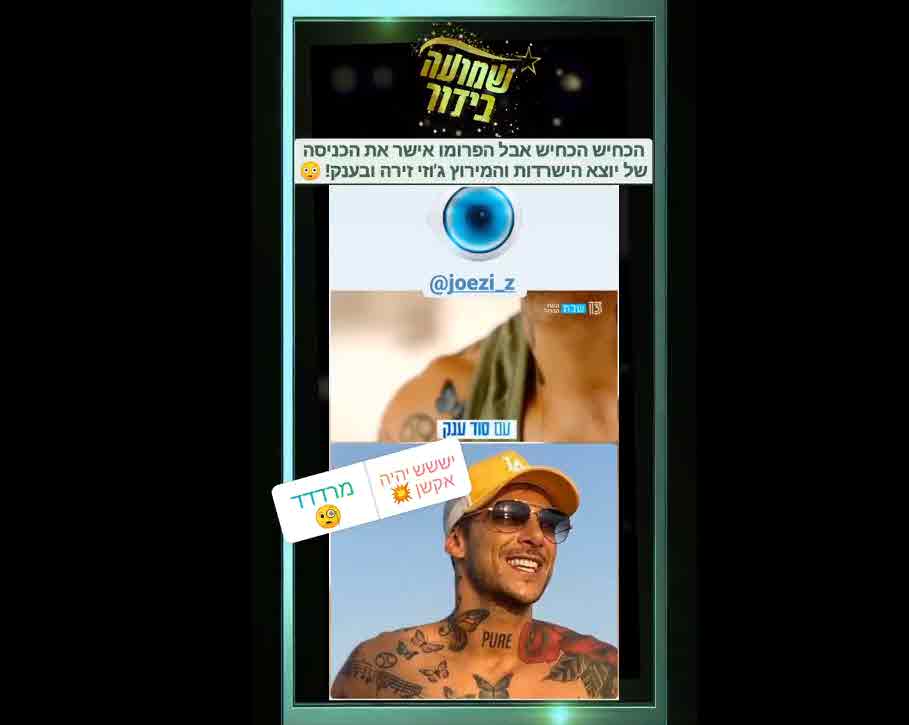 הראשון שנחשף בפרומו, ג'וזי זירה שעד ממש אתמול הכחיש כל קשר לכניסה לבית גם בנסיונות שלנו לדלות ממנו מידע!