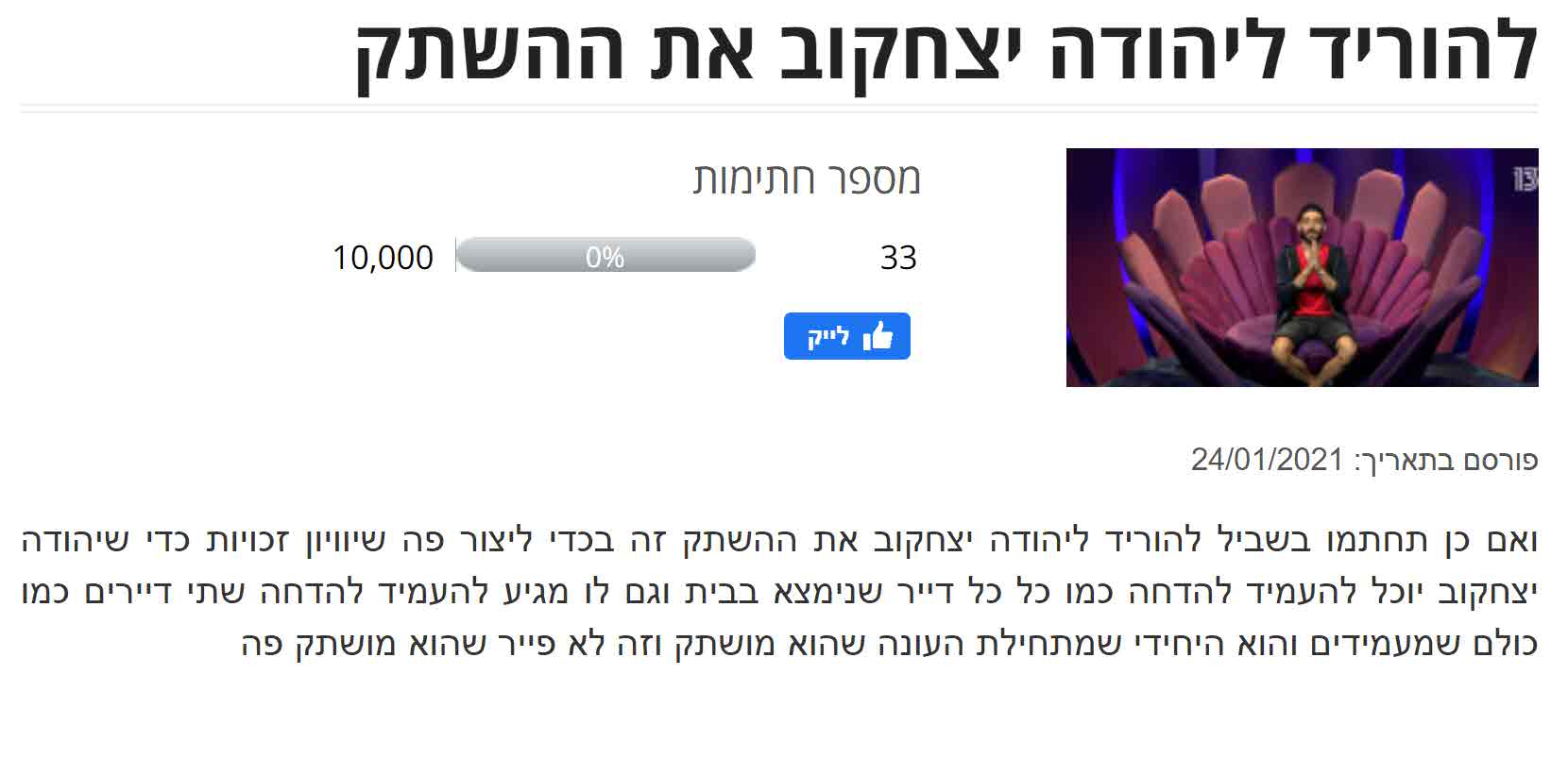 מי שלא אהבו בלשון המעטה את יחסי הכוחות בבית ואת העובדה שיהודה "מושתק" ונשאר עם מטרה על הגב בלי יותר מדי יכולות להתגונן הם מעריציו מקבוצות הפייסבוק השונות לרבות "האריות של יהודה יצחקוב" והם החליטו להרים לכבודו עצומה למען ביטול השתקתו בבית.