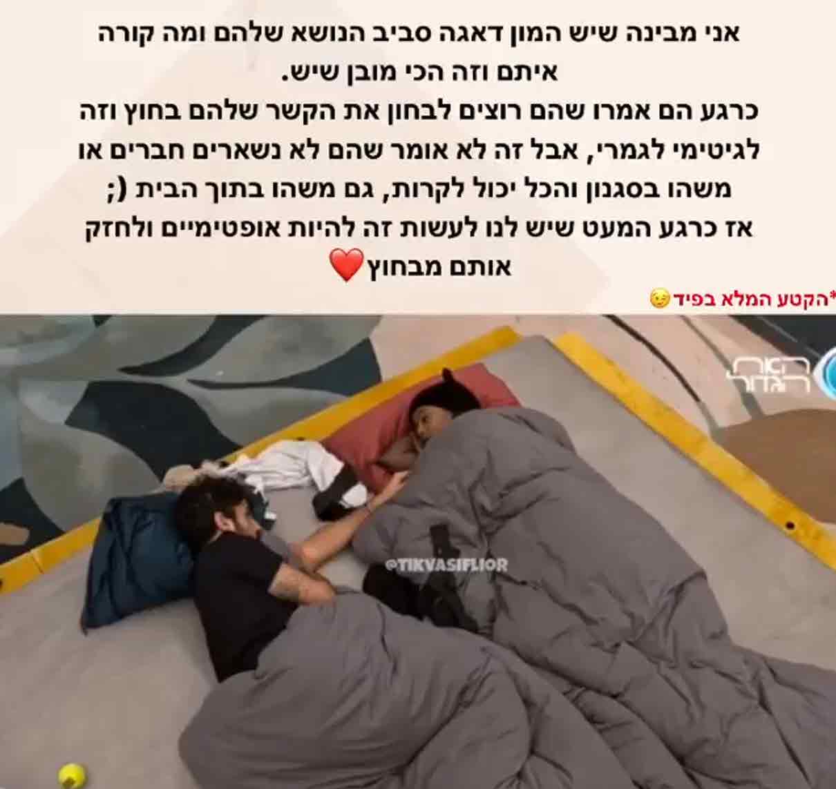 תקוה ממשיכה ואומרת שליאור אמר לה שהוא כן רוצה לנסות ולראות איך זה הולך איתה בחוץ אבל נראה שמאז אותה שיחה, תקוה וליאור כבר כמעט לא בקשר בתוך הבית ונראה שדברים שהדיירים נחשפו אליהם במשימה האחרונה, היו בעלי השפעה.