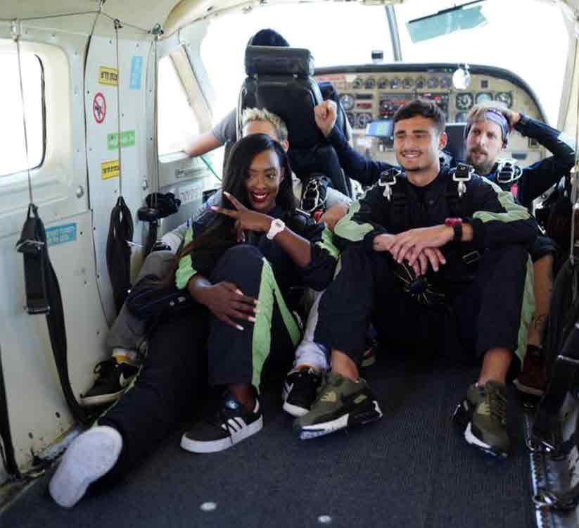 אז אומנם לא מדובר פה בטריילר מחודש ל"אהבה בשחקים" או משהו רומנטי כלל, אך הטוויסט העלילה היה כאשר השניים נדרשו לקפוץ ממטוס בצניחה חופשית לראשונה בחייהם בקמפיין אקסטרים גדול בהשראת הסרט מר וגברת סמית'!