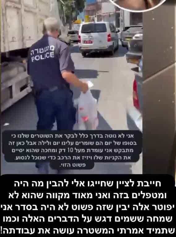 רוסלנה שהעלתה תיעוד(שנמחק לאחר מכן) ובו היא עוקבת אחרי שוטר האוחז בשקיות קניות לרכבו שחסם את תנועת הרכבים בנתיב החליטה להוסיף ביקורת שעשתה רעש ברשת והגיעה עד לטיפול המשטרה! ואלו היו דבריה:"אני לא נוטה בדרך כלל לבקר את השוטרים שלנו כי בסופו של יום הם שומרים עלינו יום ולילה אבל כאן זה מתבקש. אני עומדת מעל 10 דק' ומחכה שהוא יסיים את הקניות שלו ויזיז את הרכב כדי שנוכל לנסוע. פשוט הזוי."