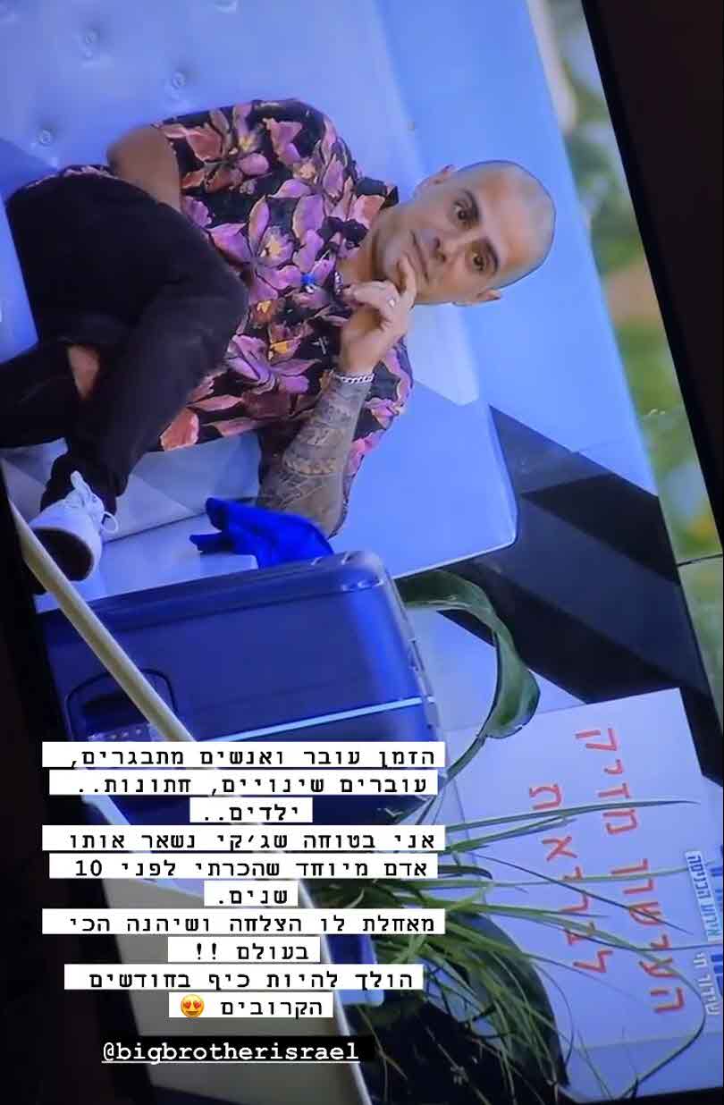"הזמן עובר ואנשים מתבגרים, עוברים שינויים, חתונות.. ילדים.. אני בטוחה שג'קי נשאר אותו אדם מיוחד שהכרתי לפני 10 שנים. מאחלת לו הצלחה ושיהנה הכי בעולם !! הולך להיות כיף בחודשים הקרובים."