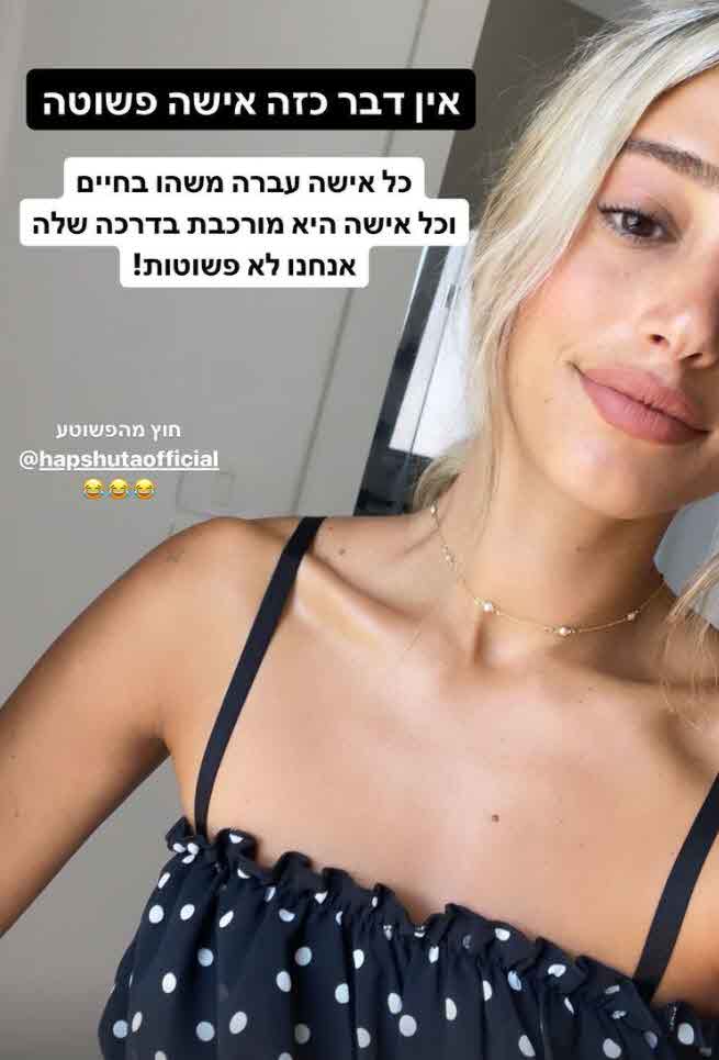 "מה זה אישה פשוטה ומה זה אנשים פשוטים? אני חושבת שלהגיד 'אישה פשוטה' שזה בעצם המושג המקובל כי לא אומרים 'גבר פשוט', פשוט מוריד מאיתנו הנשים. אז הלוואי שמירי כהן הייתה יכולה לשמוע אותי והלוואי שהייתי יכולה להגיד לה להפסיק בהאדרת המושג 'אישה פשוטה', כי היא אומרת את זה על עצמה בלי סוף והלוואי שגם רועי לולו היה שומע אותי והייתי יכולה להגיד לו – אל תגיד שאתה לא מקבל נשים פשוטות כי זה פשוט לא לעניין"