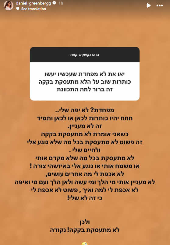 נראה כי הביף בין האחיות למשפחת גרינברג מצליח לתסוס היום במיוחד ברשתות החברתיות ומדורי הרכילות. אחרי שקארין גרינברג והמטפלת המשפחתית, מאיה זיו נצפו בסטורי קרוסאובר עם מסר הקשור גם לאייל גולן – נראה שהשאלה הבלתי נמנעת הופנתה לדניאל.
