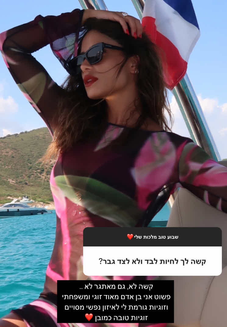 עוד נשאלה גרינברג: "קשה לך לחיות לבד ולא לצד גבר?". גם הפעם דניאל השיבה בביטחון מלא: "קשה לא, גם מאתגר לא. פשוט אני בן אדם מאוד זוגי ומשפחתי. זוגיות גורמת לי לאיזון נפשי מסוים – זוגיות טובה כמובן" חידדה.