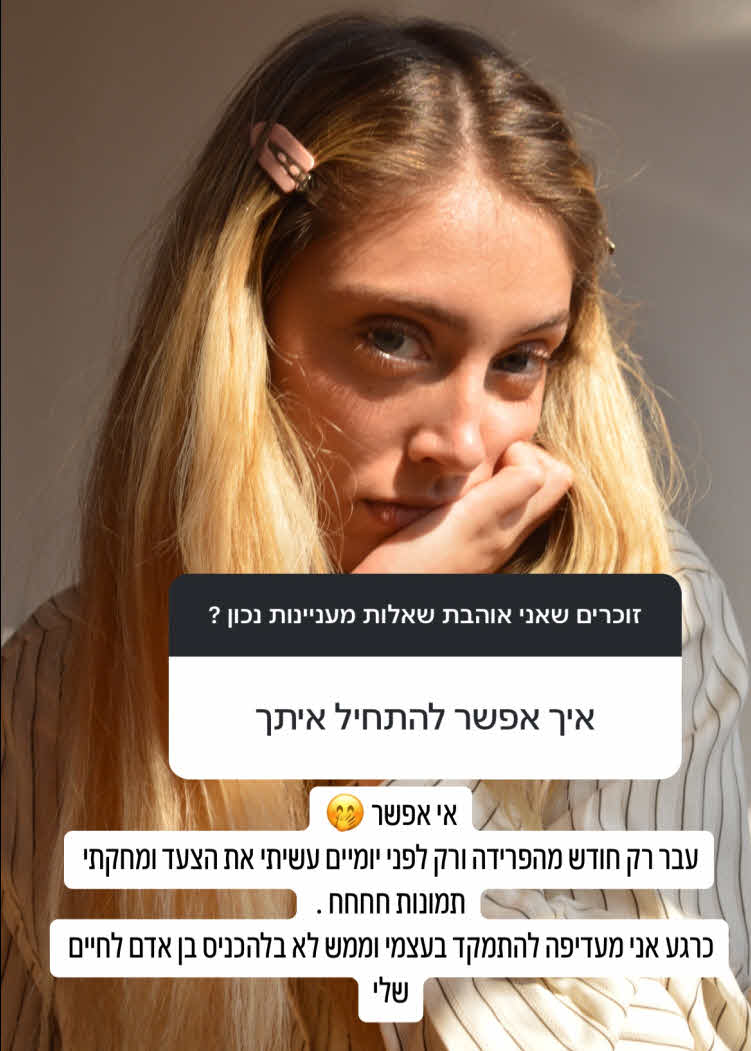 והוסיפה: "פשוט הייתי צריכה שיקרה המשהו הזה שיזכיר לי מי אני ויזכיר לי איפה אני צריכה וראויה להיות. וזהו, אני באמת כל כך שמחה שזה קרה! זה פשוט לימד אותי המון על עצמי ועדיין מלמד אותי המון על עצמי, והרווחתי מאז המון המון המון".
