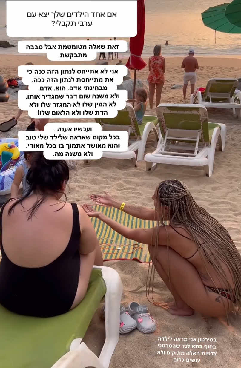 והוסיפה: "לא המין שלו, לא המגזר שלו, לא הדת שלו ולא הלאום שלו! ועכשיו אענה… בכל מקום שאראה שלילד שלי טוב והוא מאושר אתמוך בו בכל מאודי. לא משנה מה".