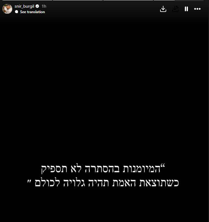 אבל נראה שהדרמה לא עוצרת כאן. שניר בורגיל שיתף הערב סטורי מפתיע במיוחד, שבו כתב משפט מסתורי: "המיומנות בהסתרה לא תספיק כשתוצאת האמת תהיה גלויה לכולם". הצופים ההמומים מנסים לפענח – למה בדיוק הוא מתכוון?