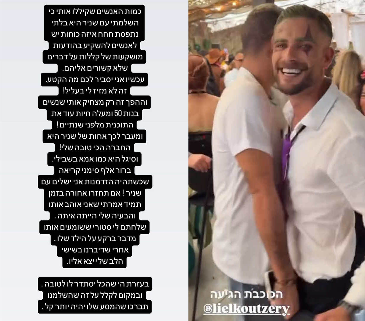 "כמות האנשים שקיללו אותי כי השלמתי עם שניר היא בלתי נתפסת", שיתף קוצרי. "איזה כוחות יש לאנשים להשקיע בהודעות של קללות על דברים שלא קשורים אליהם?" ובהמשך הבהיר: "אם תחזרו אחורה בזמן, תמיד אמרתי שאני אוהב אותו והבעיה שלי הייתה איתה. שלחתם לי סטורי ששומעים אותו מדבר ברקע על הילד שלו – אחרי שדיברנו בשישי, הלב שלי יצא אליו."