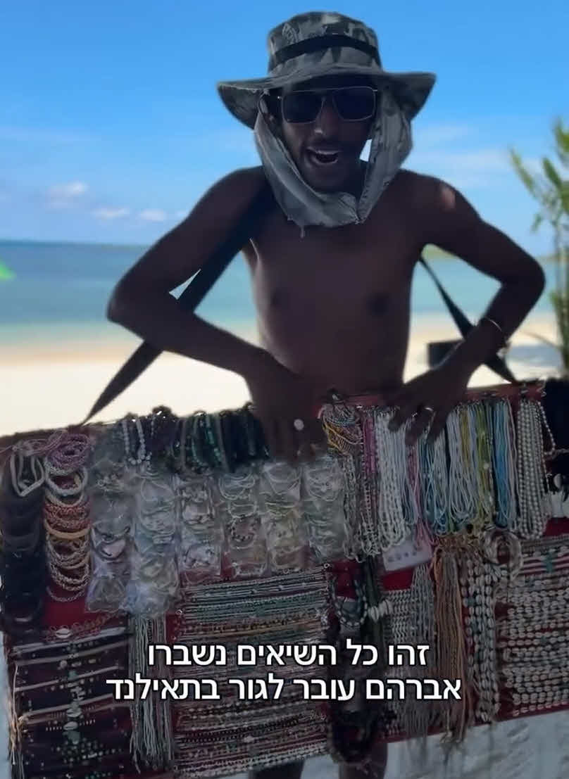 בסרטון חדש שהעלתה ספיר, ניתן לראות את אברהם כשהוא מתחפש לרוכל תאילנדי טיפוסי – עם קופסה מלאה בשרשראות וחיוך שמנסה לשכנע תיירים לקנות משהו שהם לא באמת צריכים. הוא צעד בין הכיסאות והחל לחקות את הרוכלים המקומיים, כשספיר מתעדת את הרגע וצוחקת מהצד.