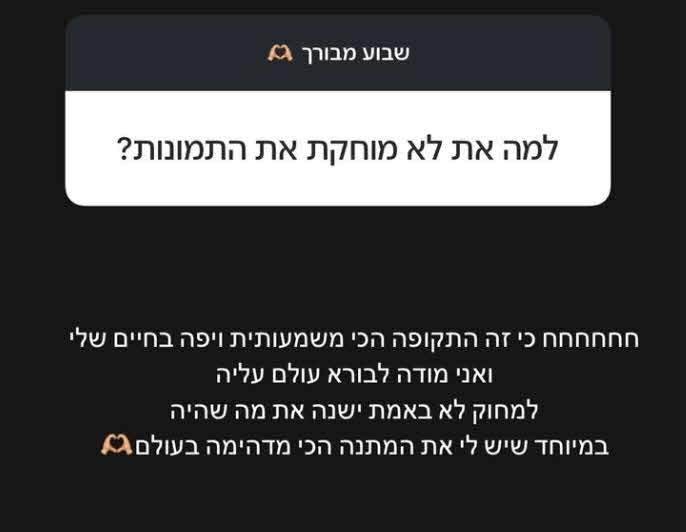 השאלה הראשונה שנשאלה הייתה בוערת במיוחד בקרב מעריציה ותומכיה הקרובים – מדוע היא עדיין שומרת את התמונות המשותפות שלה ושל שניר ברשת?