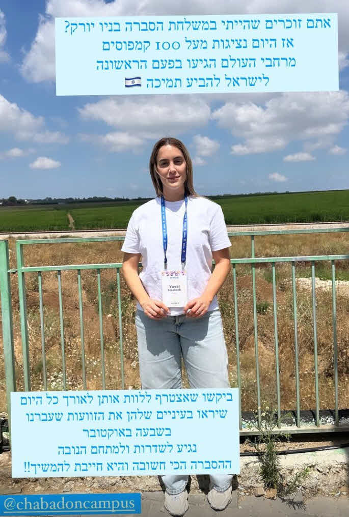 יובל מעתוק הגיעה היום בליווי משלחת חב"ד בקמפוס, משלחת של מנהלי קמפוסים יהודיים מכל העולם שהגיעו להביע תמיכה בישראל, לגבול עזה עם מטרה ברורה במיוחד.