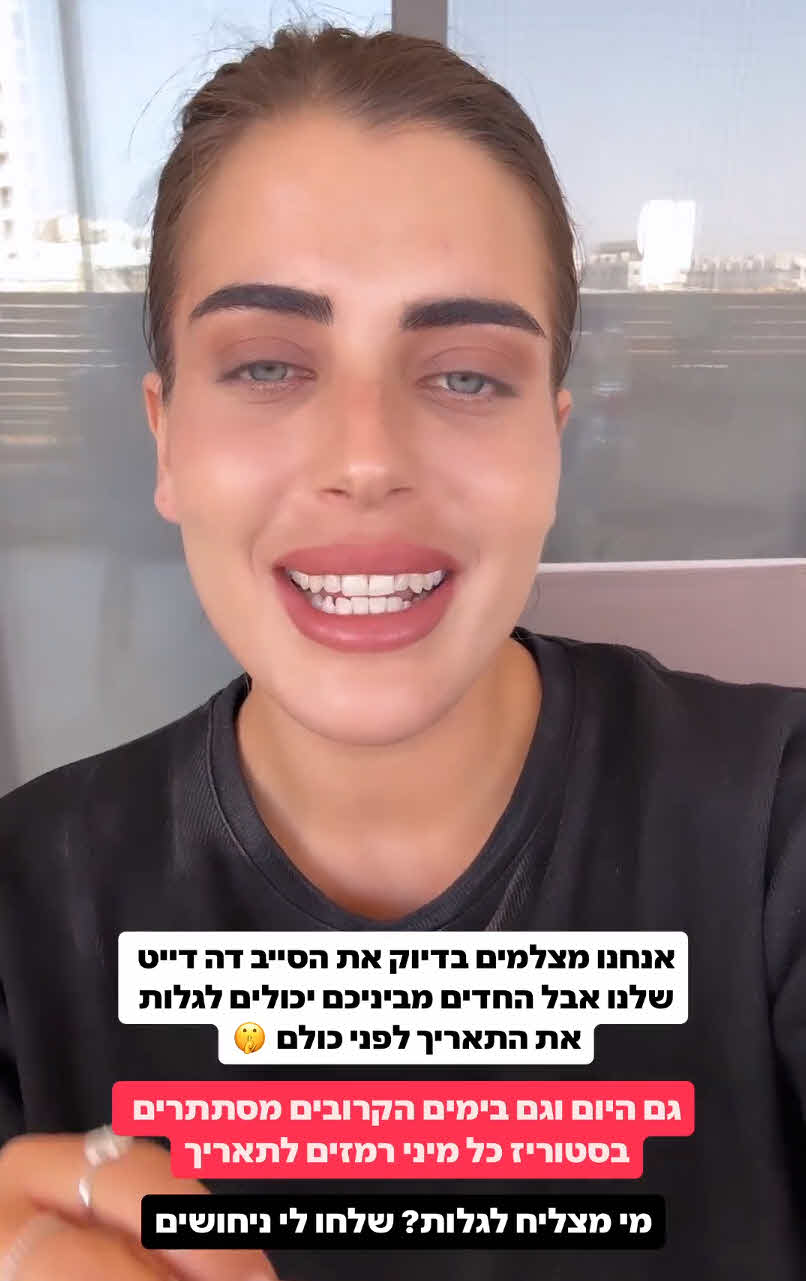 ספיר הכריזה לעוקביה: "אנחנו מצלמים בדיוק את הסייב דה דייט שלנו אבל החדים מביניכם יכולים לגלות את התאריך לפני כולם. גם היום וגם בימים הקרובים, מסתתרים בסטוריז כל מיני רמזים לתאריך. מי מצליח לגלות? שלחו לי ניחושים".