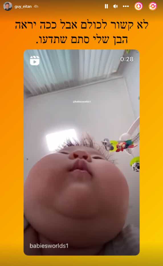 לאחר מכן יצא בסטורי שהרגיש פחות ציני כפי שהוא נוהג בשגרת דאחקות עם עוקביו: "בקיצור, בא לי ילד. בא לי ילד שאני אקח אותו איתי לבית כנסת בימי שישי ואני אחזור איתו ואעשה ארוחת שישי עם אשתי והילדים".