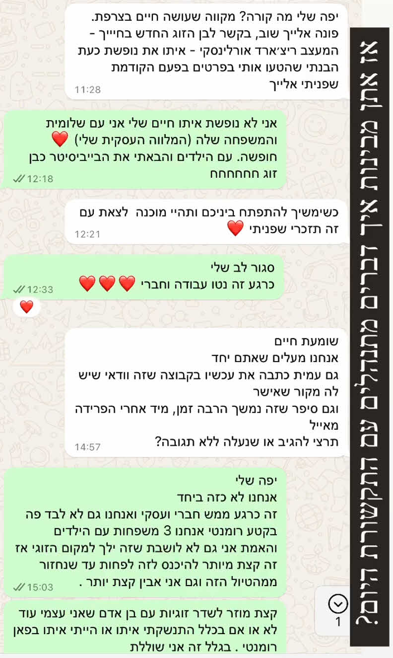 עוד הוסיפה גרינברג: "בקטע רומנטי אנחנו 3 משפחות עם הילדים והאמת אני גם לא חושבת שזה ילך למקום הזוגי אז זה קצת מיותר להיכנס לזה, לפחות עד שנחזור מהטיול הזה וגם אני אבין קצת יותר".