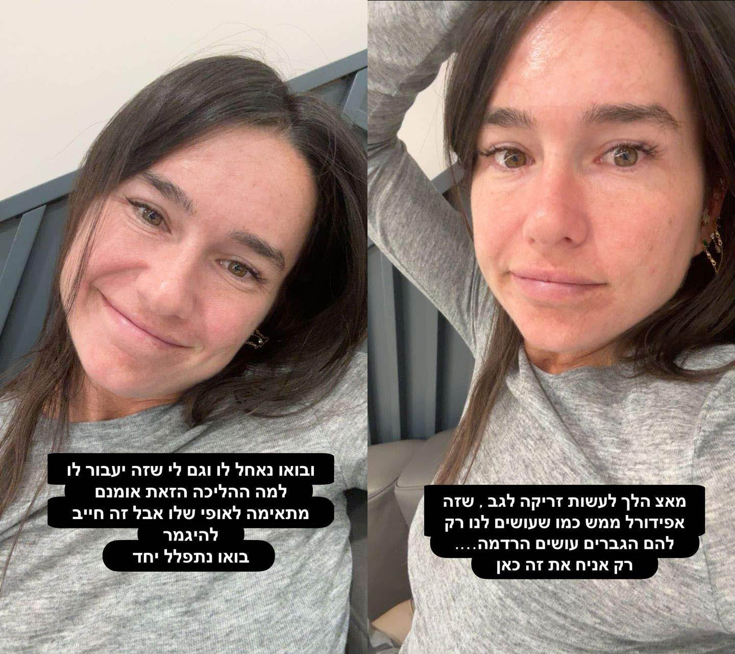 והוסיפה: "ובואו נאחל לו וגם לי שזה יעבור לו, למה ההליכה הזאת אומנם מתאימה לאופי שלו אבל זה חייב להיגמר, בואו נתפלל יחד".