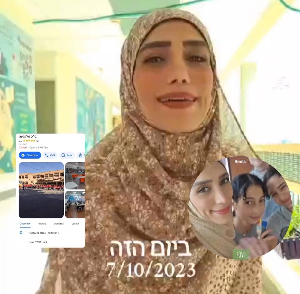 בתיעוד שעלה בעמוד האינסטגרם של "דניאל עמרם ללא צנזורה" עלה סרטון שבו מורה בישראל שמלמדת ילדים בבית ספר "אלקלעה" בנצרת, רוקדת ושמחה לצד הכיתוב "ביום הזה – 7/10/23" כשברקע מתנגן השיר "זמנים טובים".