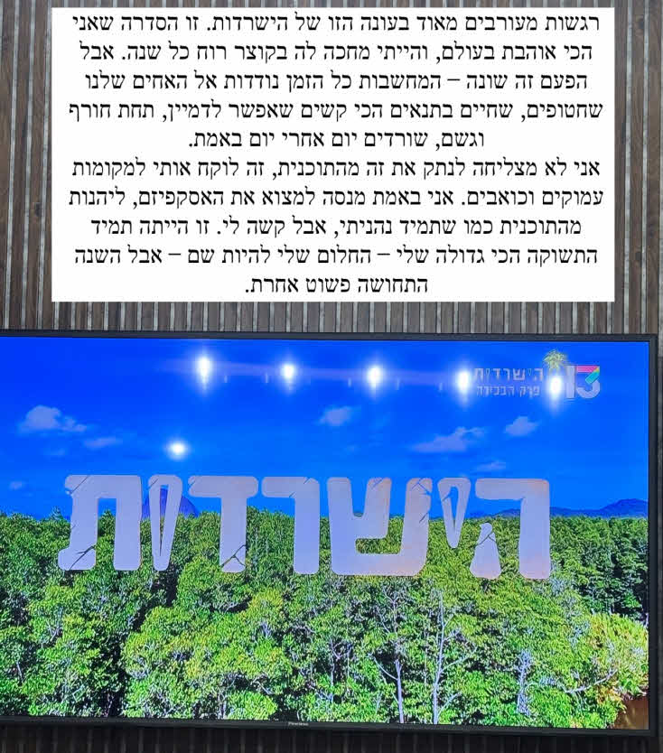 "אבל הפעם זה שונה – המחשבות כל הזמן נודדות אל האחים שלנו שחטופים, שחיים בתנאים הכי קשים שאפשר לדמיין, תחת חורף וגשם, שורדים יום אחרי יום באמת".
