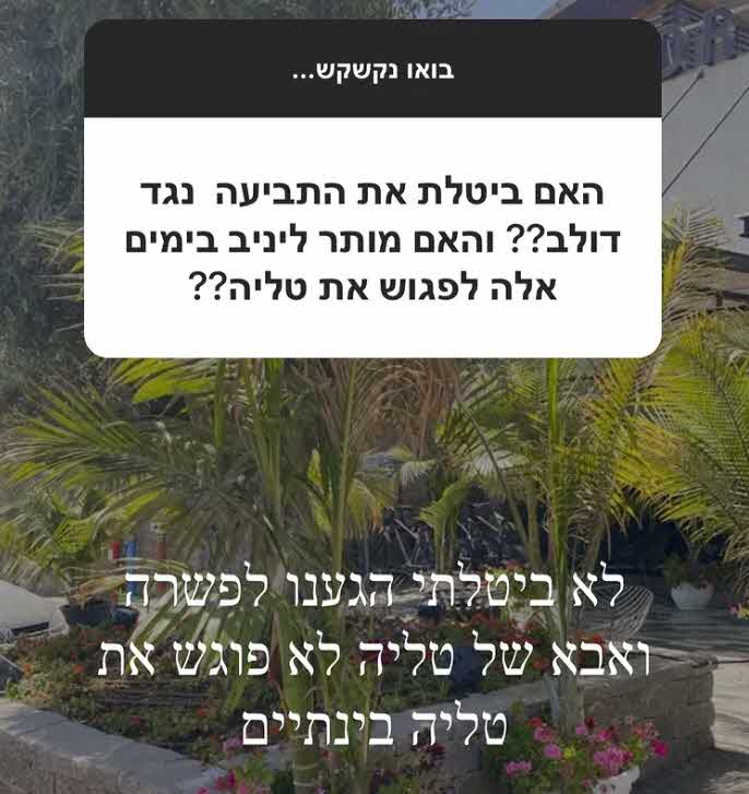ומה לגבי ההליך המשפטי שלה מול דולב סאלם, שהחל עוד בתקופה שזו הייתה במערכת יחסית עם בן משה? וגם, האם יניב מורשה לראות את ילדתם המשותפת, טליה לאחר הסכסוך המשפחתי והמשפטי?
