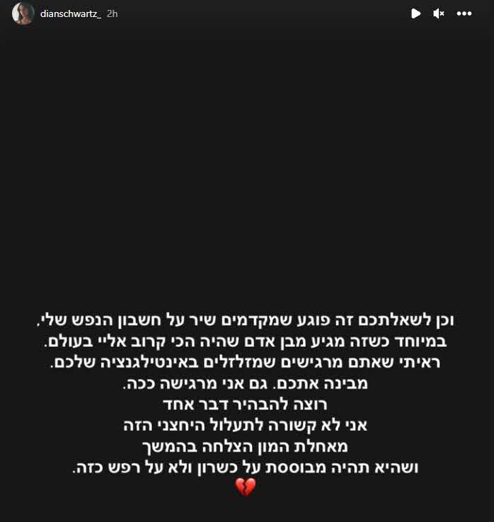 "ראיתי שאתם מרגישים שמזלזלים באינטליגנציה שלכם. מבינה אתכם. גם אני מרגישה ככה. רוצה להבהיר דבר אחד. אני לא קשורה לתעלול היחצני הזה. מאחלת המון הצלחה בהמשך ושהיא תהיה מבוססת על כשרון ולא על רפש כזה."