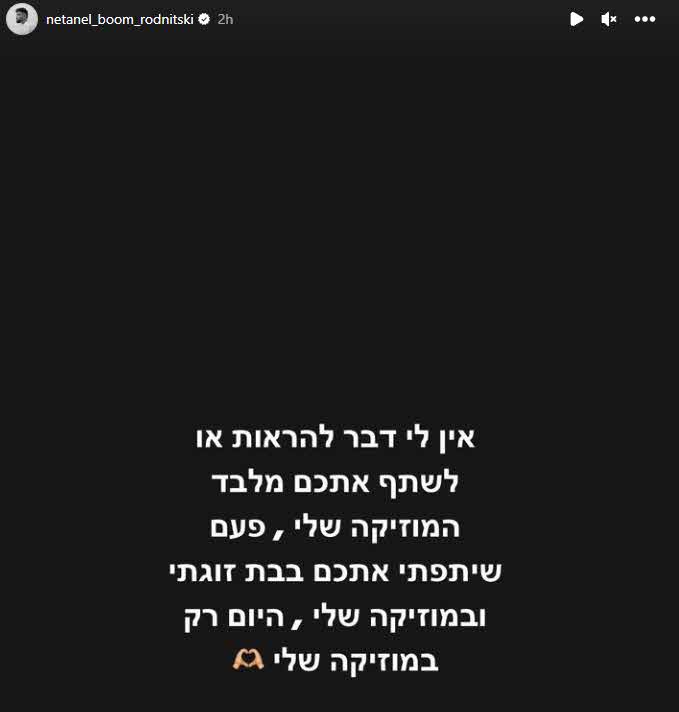 נתנאל עצמו שנחשף לסטורי העקיצה הזה של בת זוגו לשעבר החליט גם הוא לצאת להתקפה או יותר נכון להגנה סביב אותם האשמות. רודינצקי כתב בסטורי:"אין לי דבר להראות או לשתף אתכם מלבד המוזיקה שלי, פעם שיתפתי אתכם בבת זוגתי ובמוזיקה שלי, היום רק במוזיקה שלי."