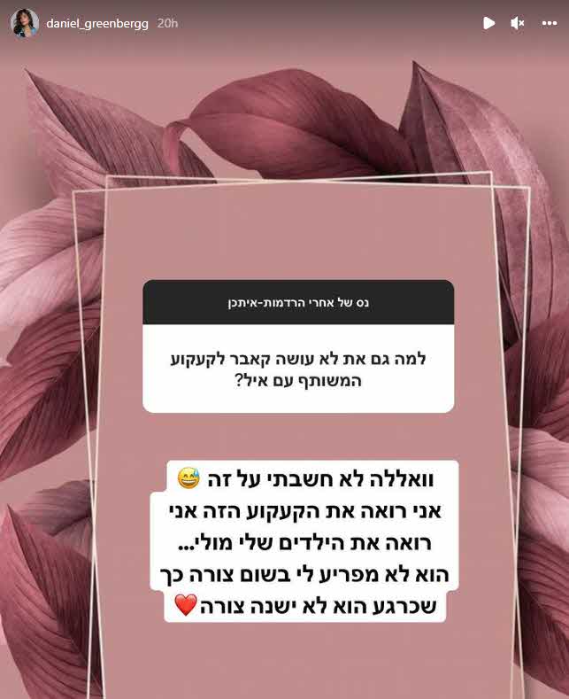 במסגרת שאלות ותשובות בחשבון האינסטגרם של דניאל גרינברג, היא החליטה לענות לשאלות העוקבים שלה אחת ולתמיד ולענות לשאלה: מדוע היא לא עושה קאבר לקעקוע המשותף עם אייל גולן כפי שעשה?