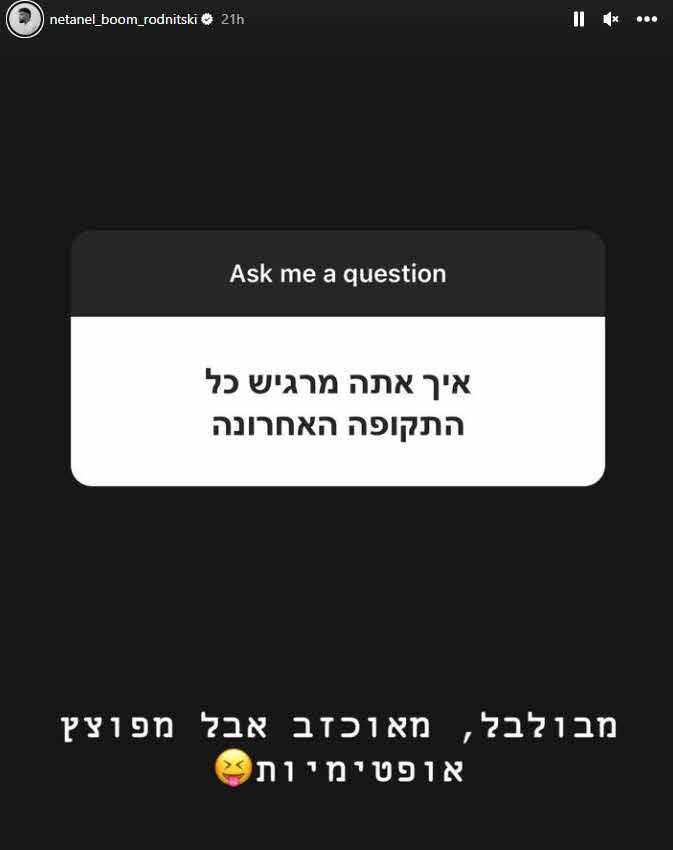 נתנאל מנגד שיתף את עוקביו איך הוא מרגיש בתקופה האחרונה:"מבולבל, מאוכזב אבל מפוצץ אופטימיות". רק לאחרונה סיפר נתנאל כי הוא מתכוון להסיר את קעקוע האפרוח שחקק בהשראת דיאן, אנחנו סקרנים מתי זה יקרה.