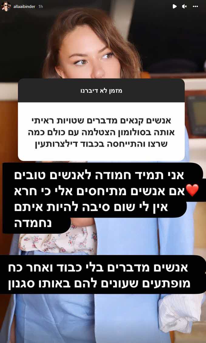 בתגובה כתבה אייבינדר:"עונה בדיוק כמו ששואלים אותי באותו רמה". אך לצד הביקורות נראה שהיא החליטה גם לשף דעות אחרות והרבה יותר חיוביות:"אנשים קנאים מדברים שטויות. ראיתי אותה בסולומון הצטלמה עם כולם. כמה שרצו והתייחסה בכבוד. די לצרות עין". חיזק אחת הגולשים.