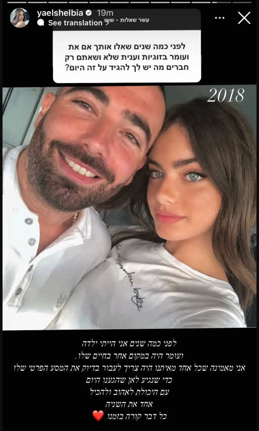 כאשר ערכה יעל סשן שאלות תשובות בעמוד האינסטגרם בעל ה- 1.4 מיליון עוקבים שלה, אחד מעוקביה הזכיר לה שנשאלה בעבר על הזוגיות עם עומר: "לפני כמה שנים שאלו אותך אם את ועומר בזוגיות וענית שלא ושאתם רק חברים, מה יש לך להגיד על זה היום?".