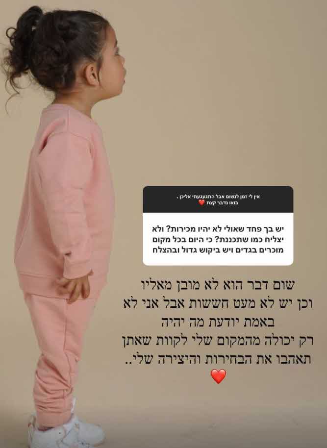 "ברוך השם אני מספיקה הכל ומבחינתי זה עוד כלום! הילדים שלי הם המניע שלי להצליח והם אלו שנותנים לי את כל הסיבות למה לא לוותר לעצמי בשום דבר בחיים. ויש תקופות בחיים שאמא צריכה לבנות את עצמה ולקבל עזרה כדי שתהיה לה את היכולת לשלב ולא לבטל את עצמה".