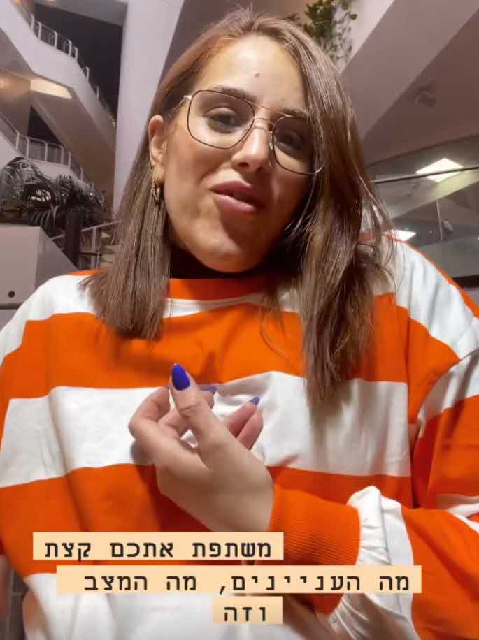 והוסיפה:"זה הרבה יותר מעניין ומעמיק ממה שעשיתי עד עכשיו במשרדי פרסום. אז עצרתי הכל ואני מתמקדת כרגע רק בזה. יש לי קצת זמן פנוי אז אני באה ועוזרת לו כי בסוף אין כמו משפחה. וזהו, אמרתי כבר תודה לתגובות החמות, אני אעדכן אתכם בממצאים וזהו תאחלו לי בהצלחה בלימודים, עם ההפרעות קשב שלי.. אבל הפעם אני מצליחה את התואר".