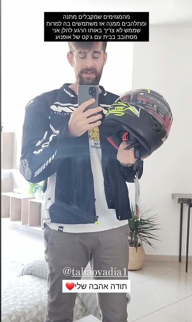 טליה כמובן שלא ישבה בחיבוק ידיים והחליטה להקדיש לשחף מילות אהבה משלה בסטורי אך גם להפתיע אותו במתנה מגניבה ושימושית במיוחד, ג'קט וקסדה לאופנוע. רז החליטה להקדיש למתנה מאהובתו סטורי נפרד ולא הסתיר את התלהבותו.